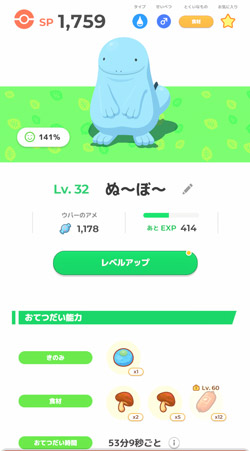 今までキノコ係を頑張ってくれていたヌオーのぬ~ぼ~。