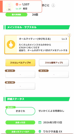 ・お手伝いポケモンの発動時のメインスキルレベルが+1