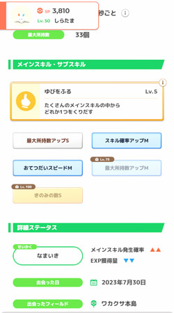 ミュウはメインスキルにもひらめきの種を使用できるようですが今回はサブスキルを解放しました。