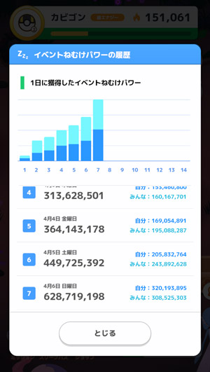 ↑今朝の時点でのイベントねむけパワー