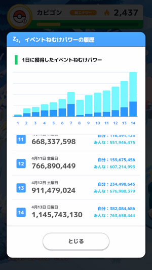 ↑今朝の時点でのイベントねむけパワー