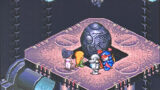 氷の神殿の最上階でガラス玉のようなものに包まれて