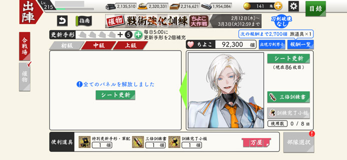 ↑ 2/17時点 【依頼札】4,316枚 【手伝い札】3,062枚 【小判】2,248,170枚